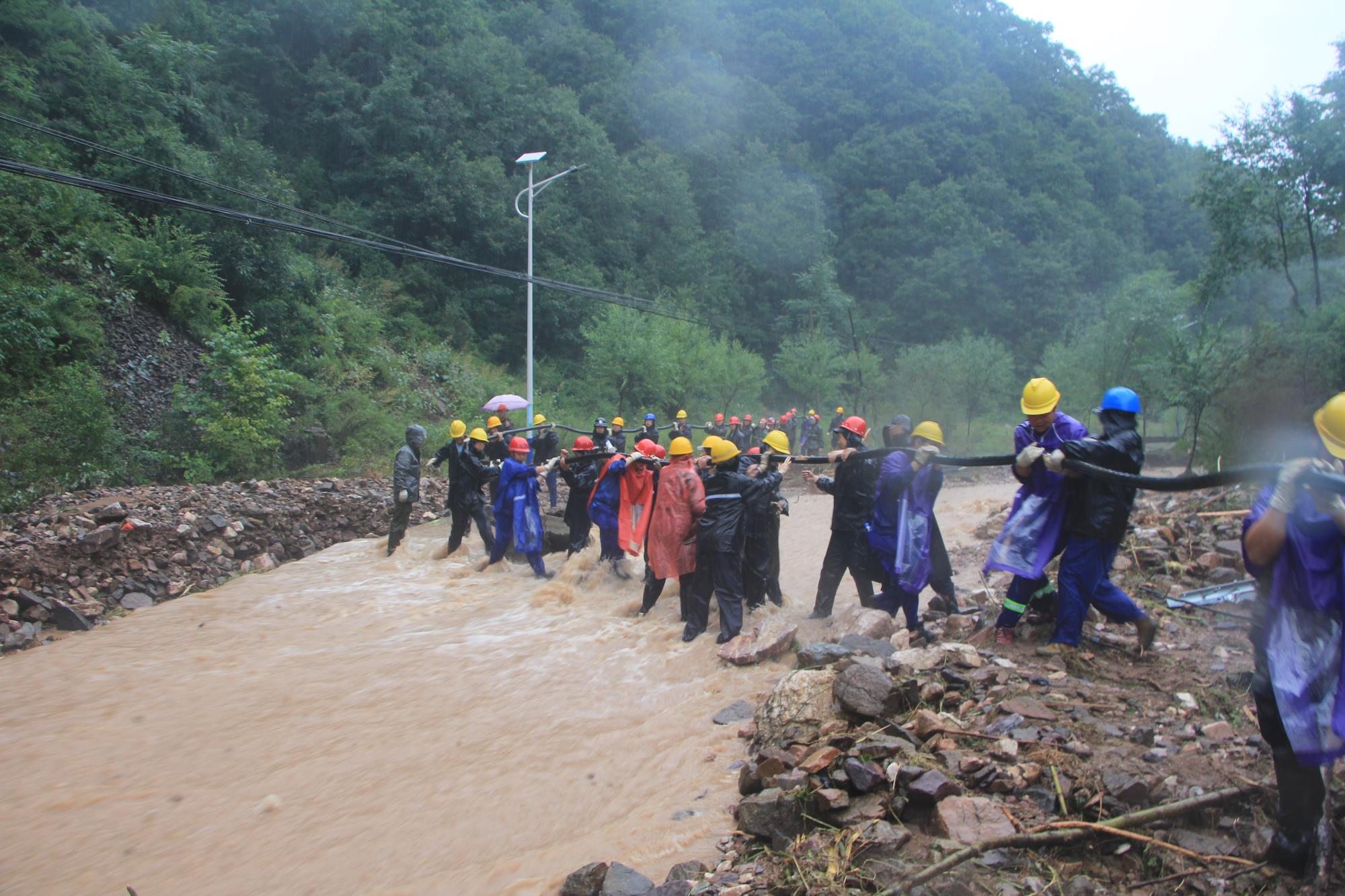 在栗西、王家坪尾矿库方向等重要生产、防汛岗位与外界失去联系后,通讯恢复工作迫在眉睫,分公司通讯车间立即启动应急预案,组织相关专业技术人员对矿区通讯线路进行巡视、抢修,对重点部位线路进行紧急临时性恢复。考虑到天黑雨急、山体滑坡、塌方持续发生以及道路抢通、人员安全等因素,8月6日,通讯车间立即组织人员分成三组,对麻家砭水库线路、三个尾矿库方向线路及寺坪地区线路进行巡查后,分公司制定了抢修方案。通讯车间外线班组人员身着雨衣、背着十几公斤的工器具、干粮,在没有路的山坡上,趟河爬沟,每日徒步20公里以上,抢修了所有通讯线路,截止8月12日13时,麻家砭水库、三个尾矿库方向及寺坪地区临时通讯线路抢修完毕,电话恢复畅通。抢修共计接通电缆、光缆断点7处,铺设临时通讯电缆约6.1公里,恢复生产、防汛重要电话34部,增设应急电话3部。