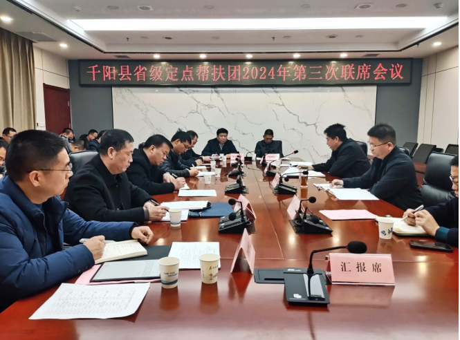 12 月 19 日上午,陕西有色金属集团在在千阳县政府 3 楼会议室组织召开千阳县省级定点帮扶团 2024 年第三次联席工作会议。陕西有色金属集团乡村振兴办主任、工会副主席艾军出席,千阳县副县长李弦主持会议。