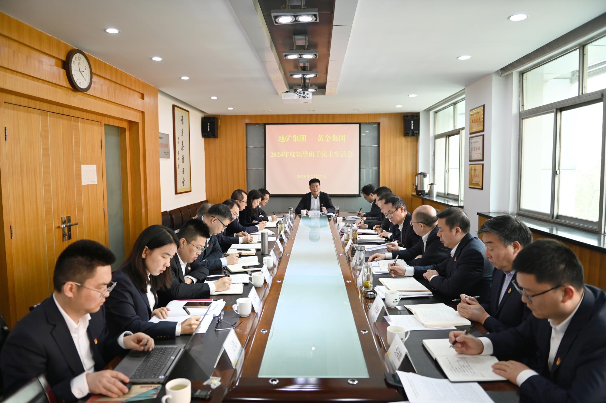 2月27日,地矿集团、黄金集团召开2024年度领导班子民主生活会,深入学习贯彻习近平新时代中国特色社会主义思想,巩固深化党纪学习教育成果,充分发挥党的纪律教育约束、保障激励作用,紧密结合实际检视问题不足,明确努力方向,为推动企业高质量发展提供坚强纪律保证。陕西有色金属集团第三督导组组长、党委副书记、董事、工会主席王小庆及第三督导组有关同志到会指导。两集团党委书记、董事长秦西社主持会议,领导班子成员参加会议。
