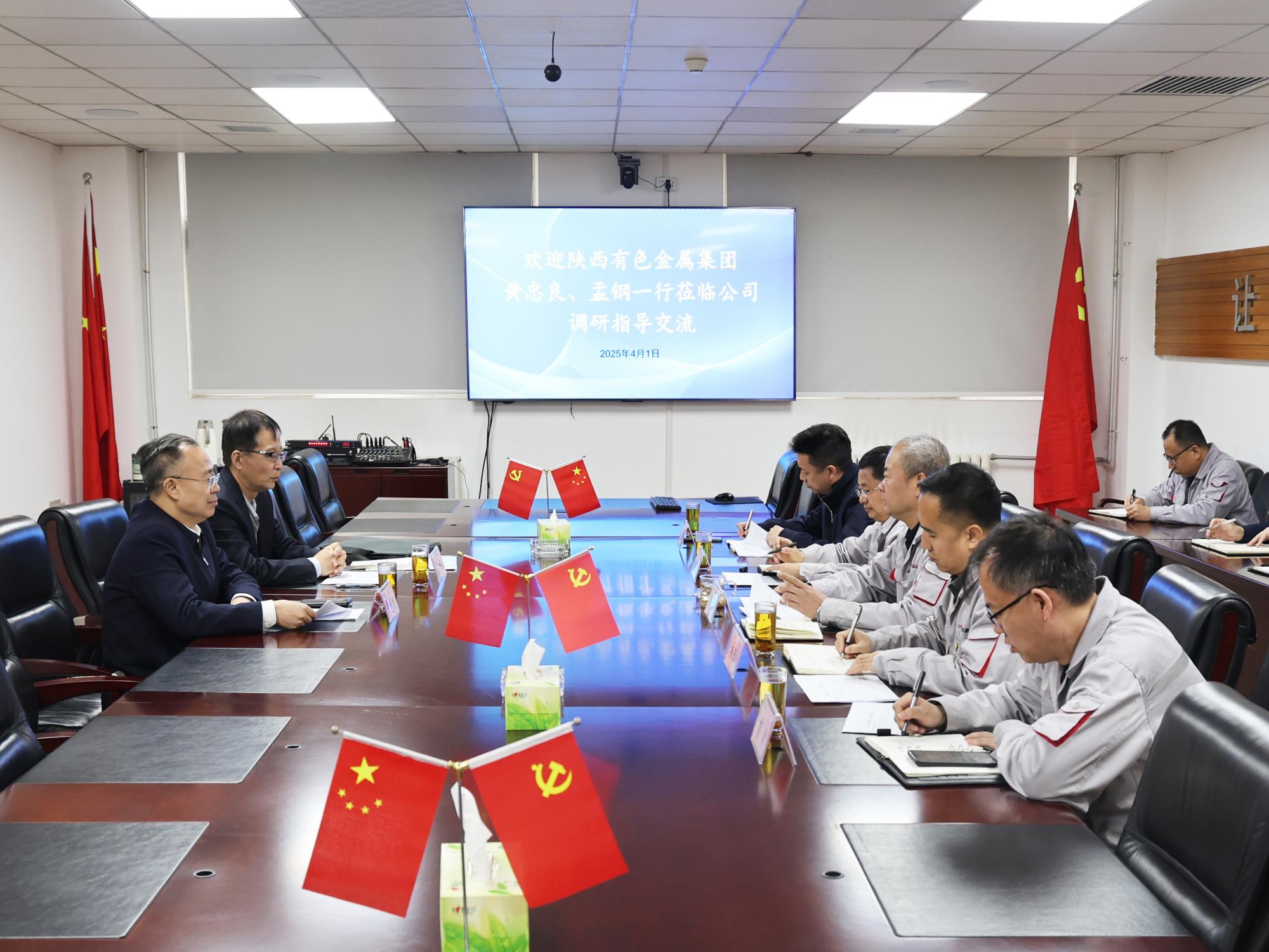 4月1日,陕西有色金属集团党委委员、副总经理黄忠良一行到陕西美鑫调研生产经营和项目建设情况。集团公司董事会秘书、总经理助理、党委组织部部长孟钢一同调研。