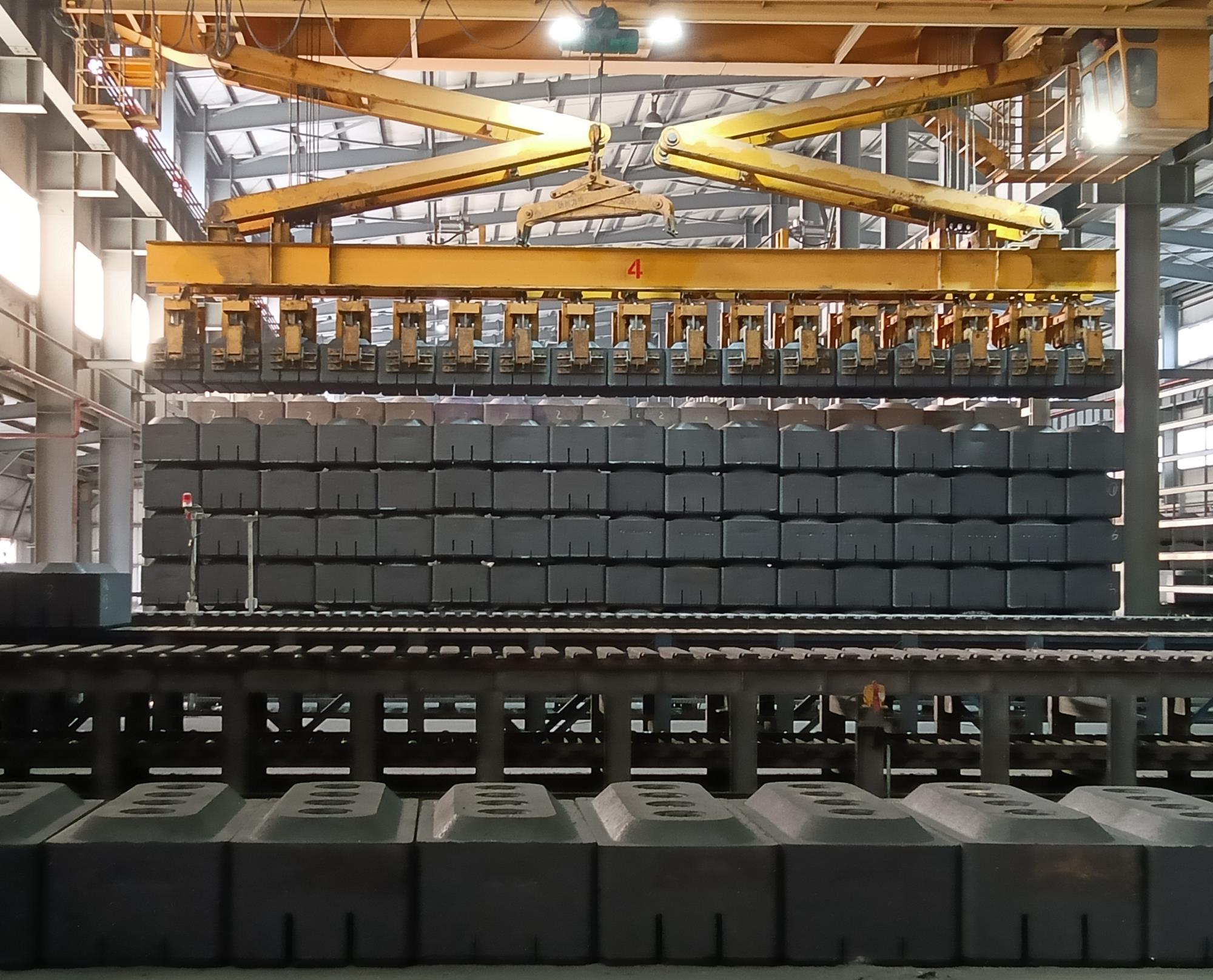 在产业链的“神经末梢”,阳极分公司的产能释放为全链条注入新动能。随着第四套火焰系统点火投产,预焙阳极月产量提升3300吨,不仅满足内部14万吨年需求,更将6万吨富余产能投向外销市场。通过2#线成型机改造,加强升温曲线及密封管理,优化相关设备、工艺技术参数,使预焙阳极合格率持续保持在98.8%以上,为电解槽高效运行提供关键保障。“我们正在建设工程师创新工作室,计划年内申报4项阳极制造专利”,阳极分公司负责人表示。