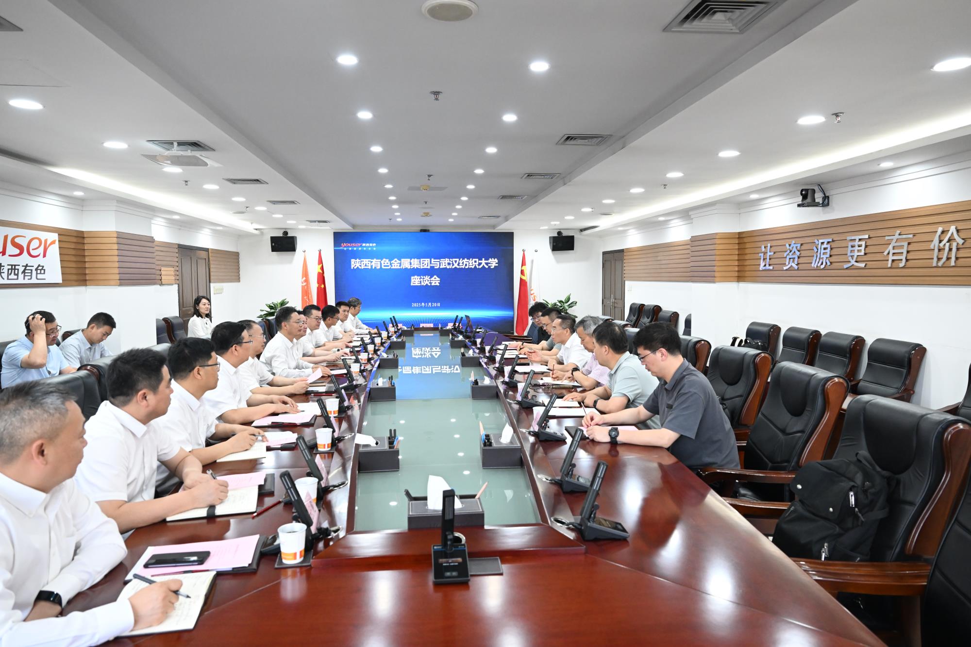 武汉纺织大学教授王应德,武汉纺织大学教授、纺织新材料及先进加工重点实验室副主任刘可帅,武汉纺织大学教授李文斌,副教授许多、何加浩,陕西有色碳硅项目组,集团公司资产财务金融部、战略发展改革部,有色研究院、碳硅新材料公司有关负责人参加座谈。