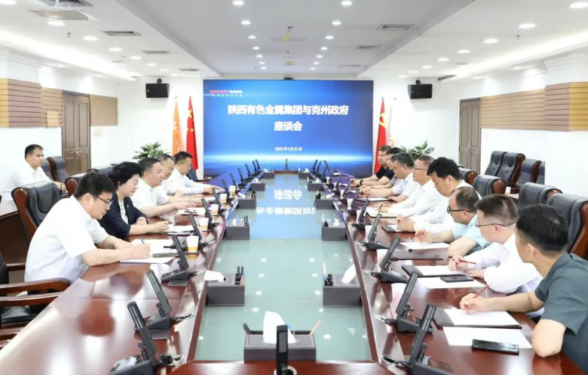 5月21日,陕西有色金属集团党委副书记、董事、总经理莫勇与新疆克州党委副书记、州长吾肉孜阿力·哈西哈尔巴依一行在集团总部座谈交流。集团公司党委委员、副总经理黄忠良参加座谈。