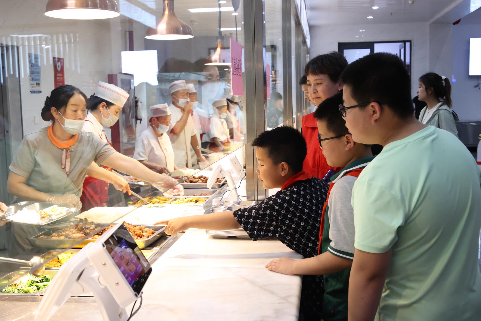 职工食堂内,亲子时光温馨延续。孩子们有条不紊地排队取餐,与家长围坐一堂,共同探讨参观的收获与感悟。丰富的菜肴和轻松愉快的氛围让亲子关系更加融洽,在“心贴心”的交流中,孩子们更真切地理解了父母工作的辛劳与价值。