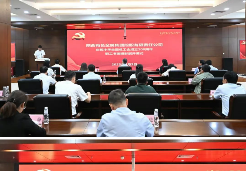 为庆祝中华全国总工会成立100周年,展示广大职工昂扬向上的精神风貌和时代风采,丰富职工精神文化生活,6月3日,陕西有色金属集团“劳动铸就辉煌 文艺展示风采”主题职工书画、摄影展在集团总部开幕。省总工会党组成员、副主席王占军出席,集团公司党委书记、董事长吴群英,党委副书记、董事、总经理莫勇观展,党委副书记、董事、工会主席王小庆致辞,集团公司董事,地矿、黄金集团党委书记、董事长秦西社,省机械冶金建材工会主席刘小萍出席。工会常务副主席张继祥主持并宣读大赛获奖名单。