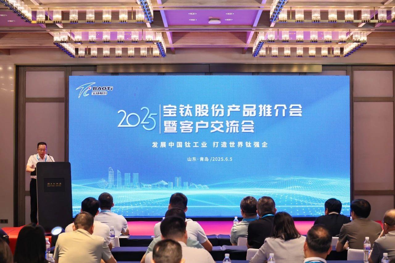 6月5日,宝钛股份2025年产品推介会暨客户交流会在青岛举行。45家合作单位、77位行业伙伴齐聚一堂,共话钛业发展新机遇,共绘合作新蓝图。宝钛集团副总经理、总工程师,宝钛股份董事何书林致欢迎辞。宝钛股份副总经理容耀主持会议。