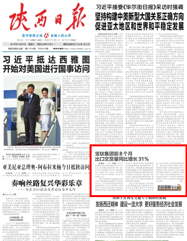 宝鸡市钛及钛合金规模居全国之首,市场份额占国内钛加工材市场80%以上,其中宝钛品牌占有国内高端钛材市场95%以上的份额。面对经济下行压力加大的局面,宝钛集团坚持稳中求进,以提高发展质量和效益为中心,狠抓改革攻坚,突出创新驱动,加快转型升级,强化风险防控,大胆开拓市场。特别是抢抓丝绸之路经济带发展机遇,引导企业依靠科技创新走差异化发展之路,使新研发出的产品替代了同类进口产品,稳住了国内市场,同时还注重开发国外市场,通过新产品出口,抢占国际市场份额,实现企业的平稳发展。