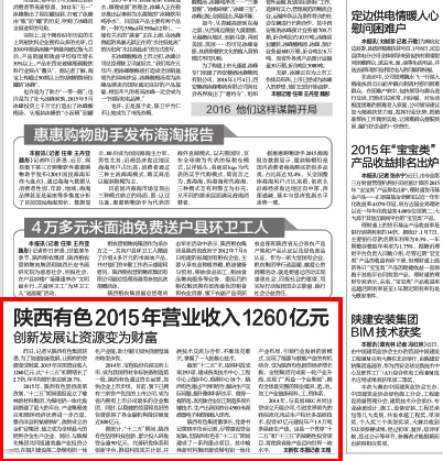 昨日,记者从陕西有色集团获悉,为了加速创新发展,让拥有的资源变成财富,2015年实现营业收入1260亿元,比“十二五”初期增长了2.7倍,年平均增长率达到20.7%。