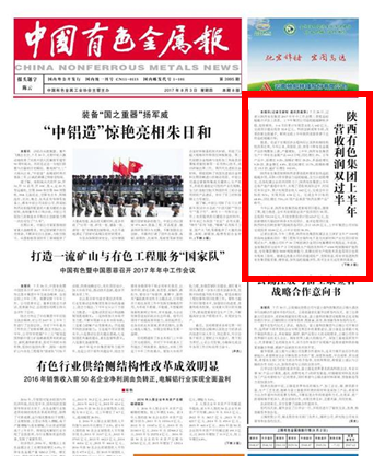 “改革发展任重道远,目标任务催人奋进。”陕西有色集团董事长、党委书记马宝平表示。陕西有色集团将通过进一步深化改革,不断释放持续发展的活力和动力,聚焦追赶超越,通过创新驱动实现全面提质增效,以优异成绩迎接党的十九大胜利召开。