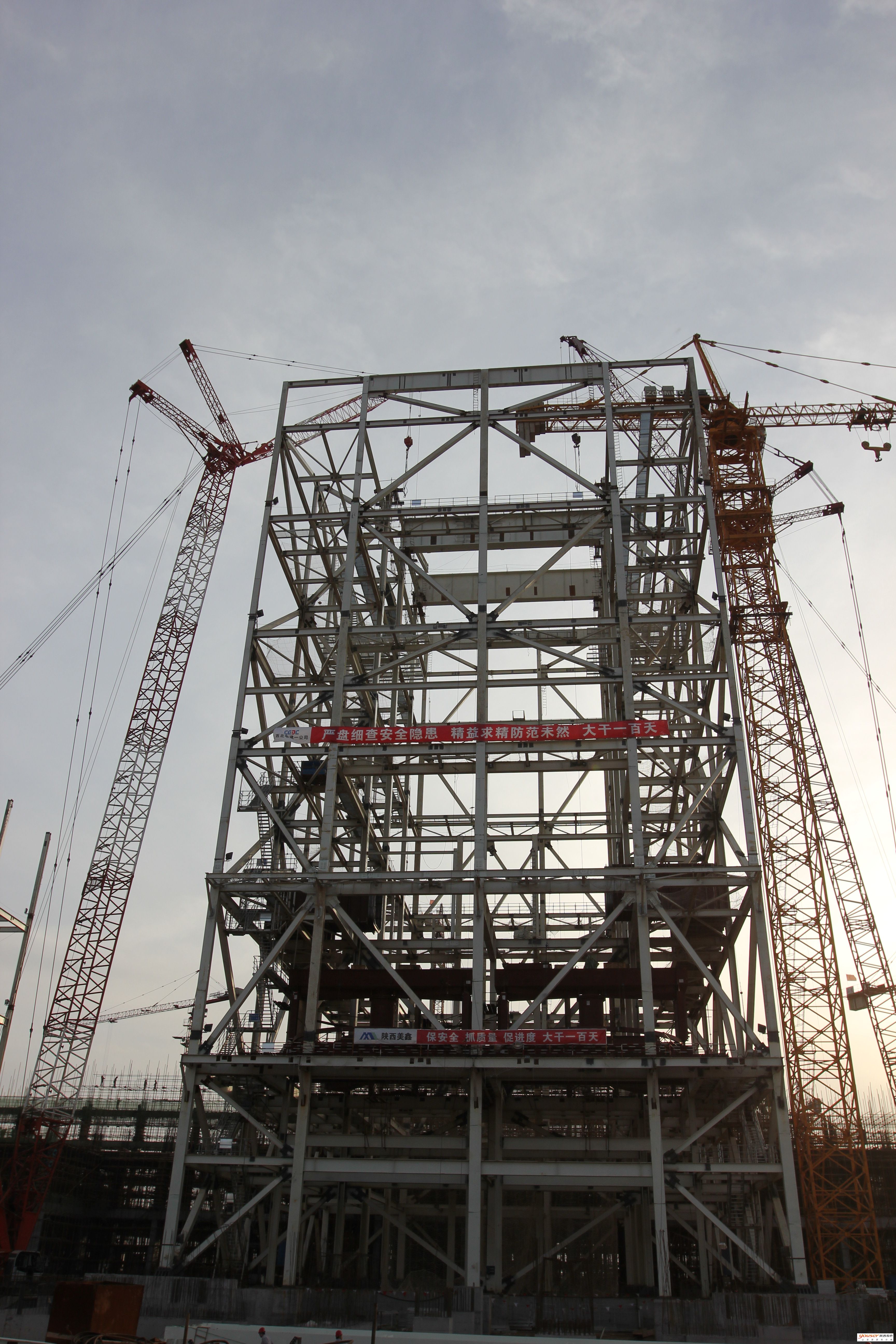 据了解,大板梁吊装是动力站工程建设中重要的节点,它标志着锅炉钢架安装工作即将结束,锅炉受热面的安装工作即将全面展开。