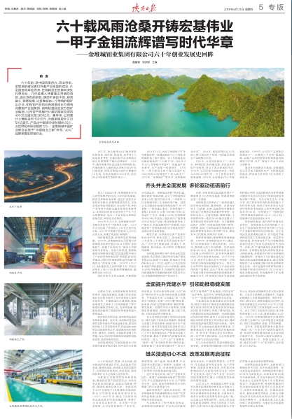 在澎湃的改革浪潮中,金钼集团已展现出改中向好、改中向进的趋势。在未来的发展进程中,金钼集团将以建企60周年为新的起点,以改革开放40周年为新的契机,在习近平新时代中国特色社会主义思想和党的十九大精神的指引下,在陕西省委、省政府和陕西有色金属控股集团有限责任公司的领导下,坚持科学发展观,进一步强化竞争意识,提高战略经营能力,为把公司建设成具有国际竞争力的综合性矿业集团而不懈奋斗。为我国由钼工业大国向钼工业强国转变,为地方经济的蓬勃发展作出更大的贡献。